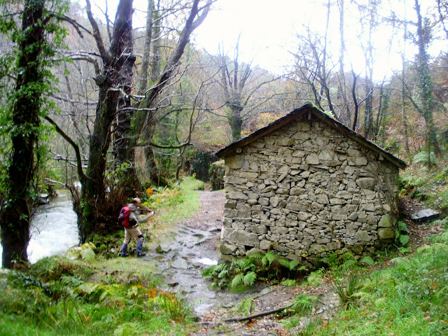 Así que volvemos nuevamente sobre nuestros pasos en dirección hacia Oneta. Antes de llegar, un fuerte aguacero nos hace resguardarnos en la cabaña cubierta de hiedra que se encuentra antes de la primera de las cascadas.