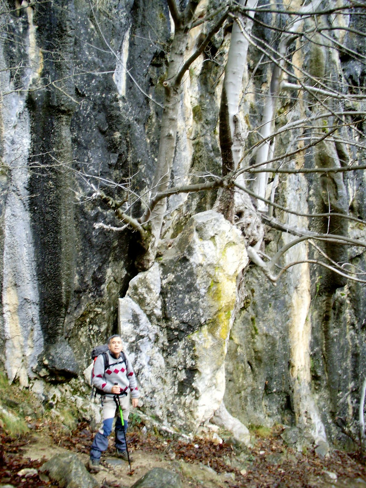 Nos llama la atención una singular haya que esta literalmente arraigada al enorme paredón.