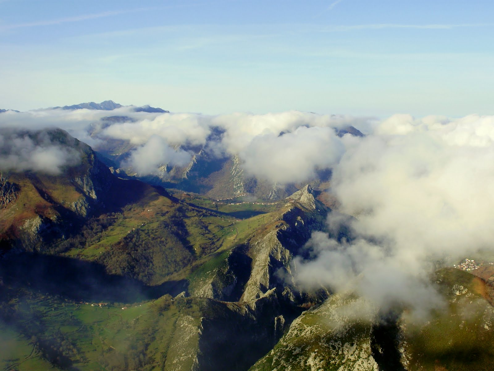 A nuestra espalda, el Pierzo despunta tras los cordales de la margen izquierda del Sella.