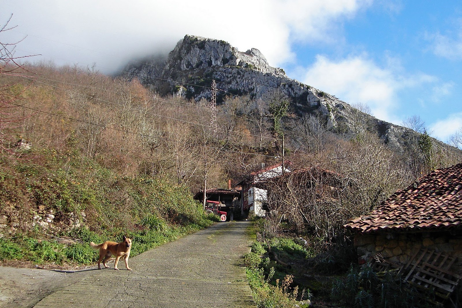 Nuestro recorrido nos lleva a tomar el camino que unía el pueblo de San Román con el valle del Sella a través del prado Colín y el pueblo de Cien.  Para ello no es necesario llegar hasta el pueblo, en una curva  situada antes de cruzar la riega que cruza la carretera a la entrada de San Román sale un claro camino que discurre llaneando junto a la linea de tendido eléctrico.