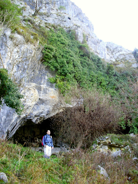 El descenso es muy pindio teniendo que agarrarse a las hierbas para ayudarse en el descenso(en especial hoy que está el terreno húmedo). Una vez situados en la zona inferior echamos un vistazo atrás para ver lo pindio de este descenso.