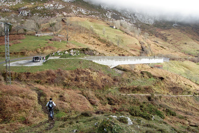 Una vez situados nuevamente en el collado Corona tomamos un sendero que faldeando el pico Cuesta Valles en dirección este (E) nos baja hasta el Collado de Amieva donde discurre la carreterina que une las poblaciones de San Román y Amieva