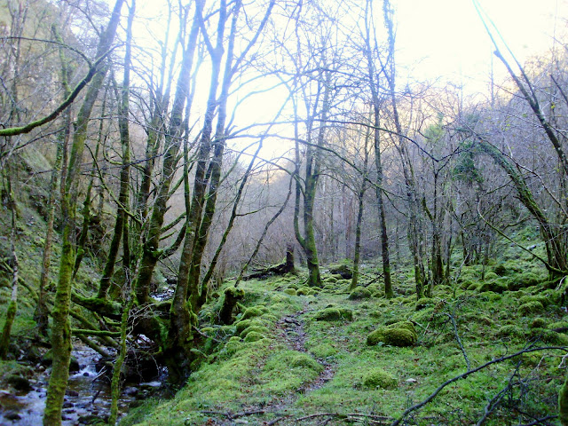 El camino se adentra por el valle de la Felguerina con suave remontada tapizada por un tupido bosque de ribera.