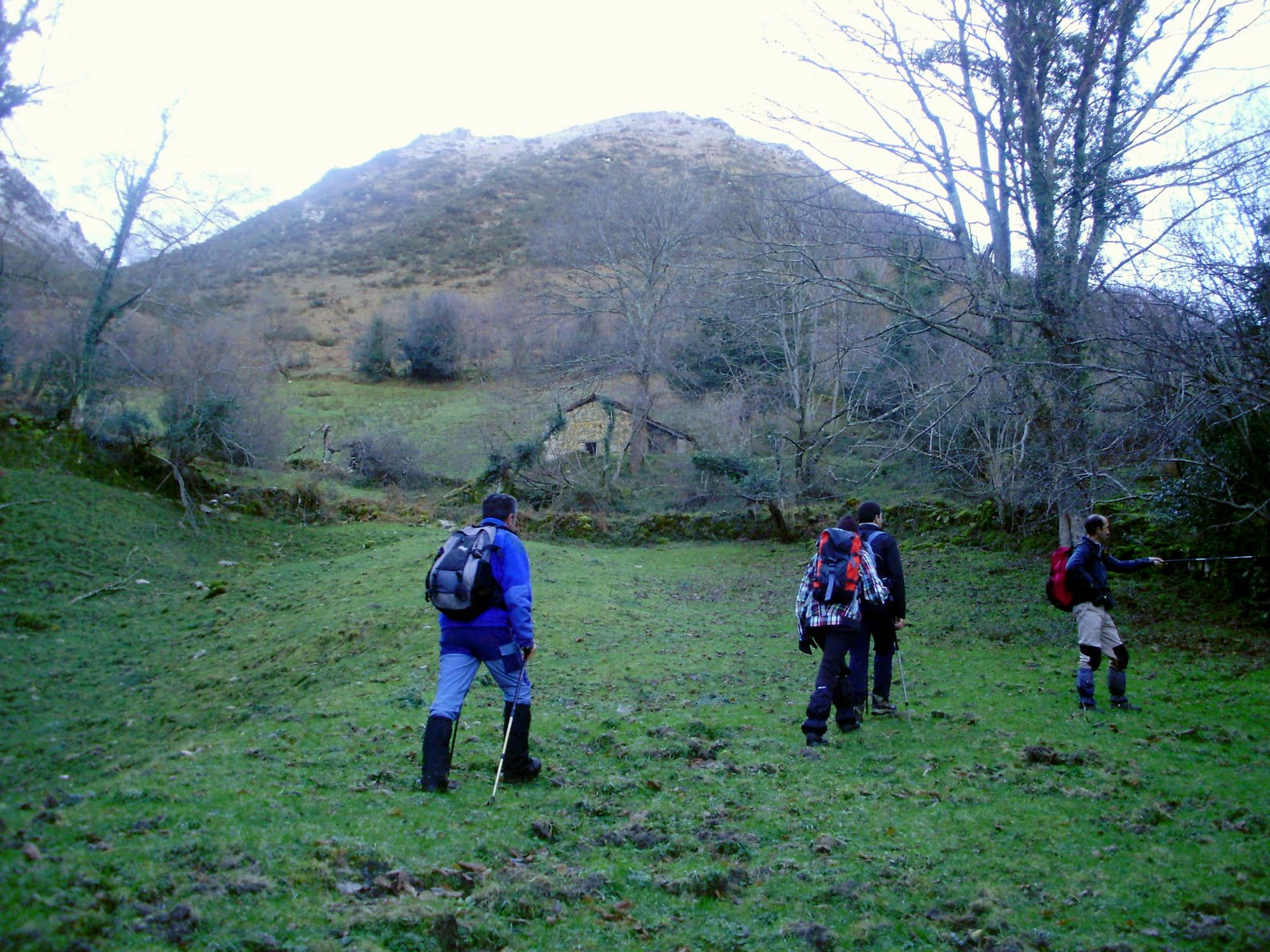 No tenemos falta de bajar hasta la parte baja del valle ya que junto a la primera de las cabañas que nos encontramos sale un sendero que cruza la Riega los Calderones y enlaza con el camino que asciende desde Les Cuerries hasta la majada de Ordiales.