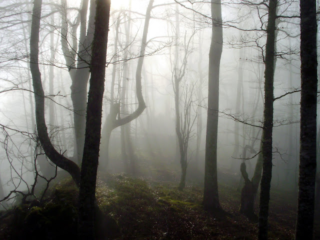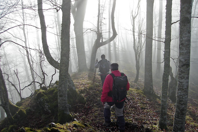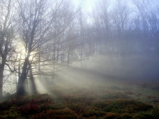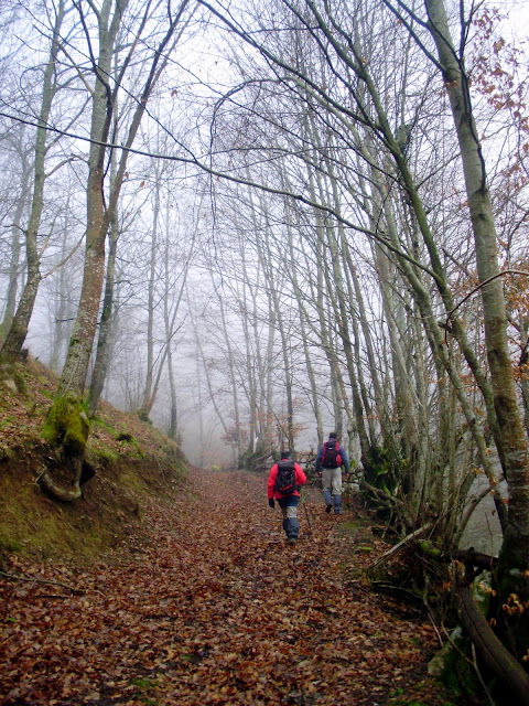 La niebla junto con el sol que empieza a asomar, hacen que el recorrer este hayedo se convierta en una maravilla para los sentidos. Os dejo unas fotos de este tramo