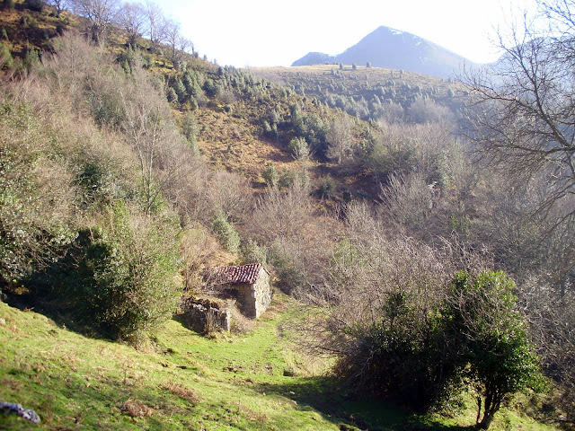 Cabañas en ruinas, tramo final de descenso por valle pegado a Peña Casar.