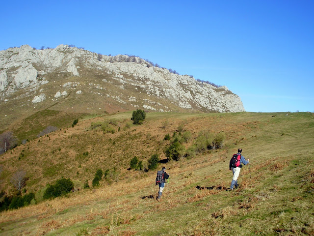 Hemos de girar a nuestra izquierda, dirección (N) para seguir a lomos del cordal en busca de la base de la Peña Casar.