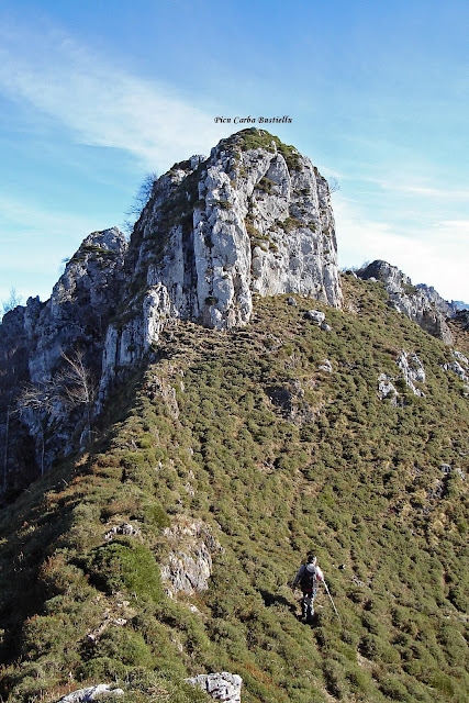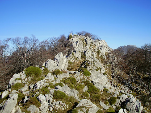 Tras este paso nos alzamos al crestón calizo donde seguimos recorriendolo en dirección este (E)