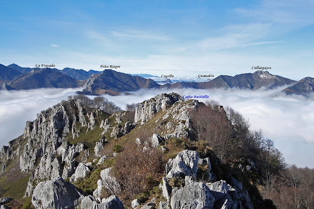 Llegamos a la cumbre de Peña Blanca (1.289 m.) en algunos planos figura como Porrón o como Carba Bustiello.
