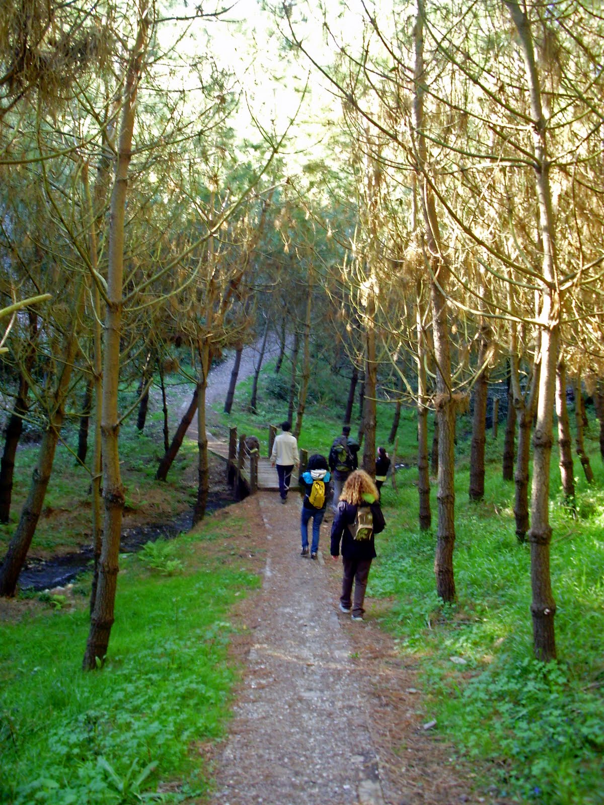 Respeta el entorno natural y la flora local, especialmente al cruzar pinares y plantaciones de camelias.