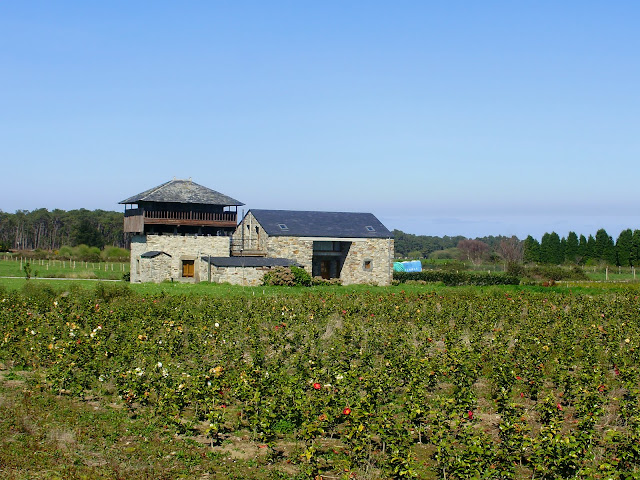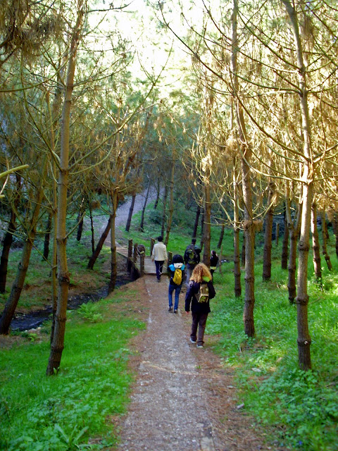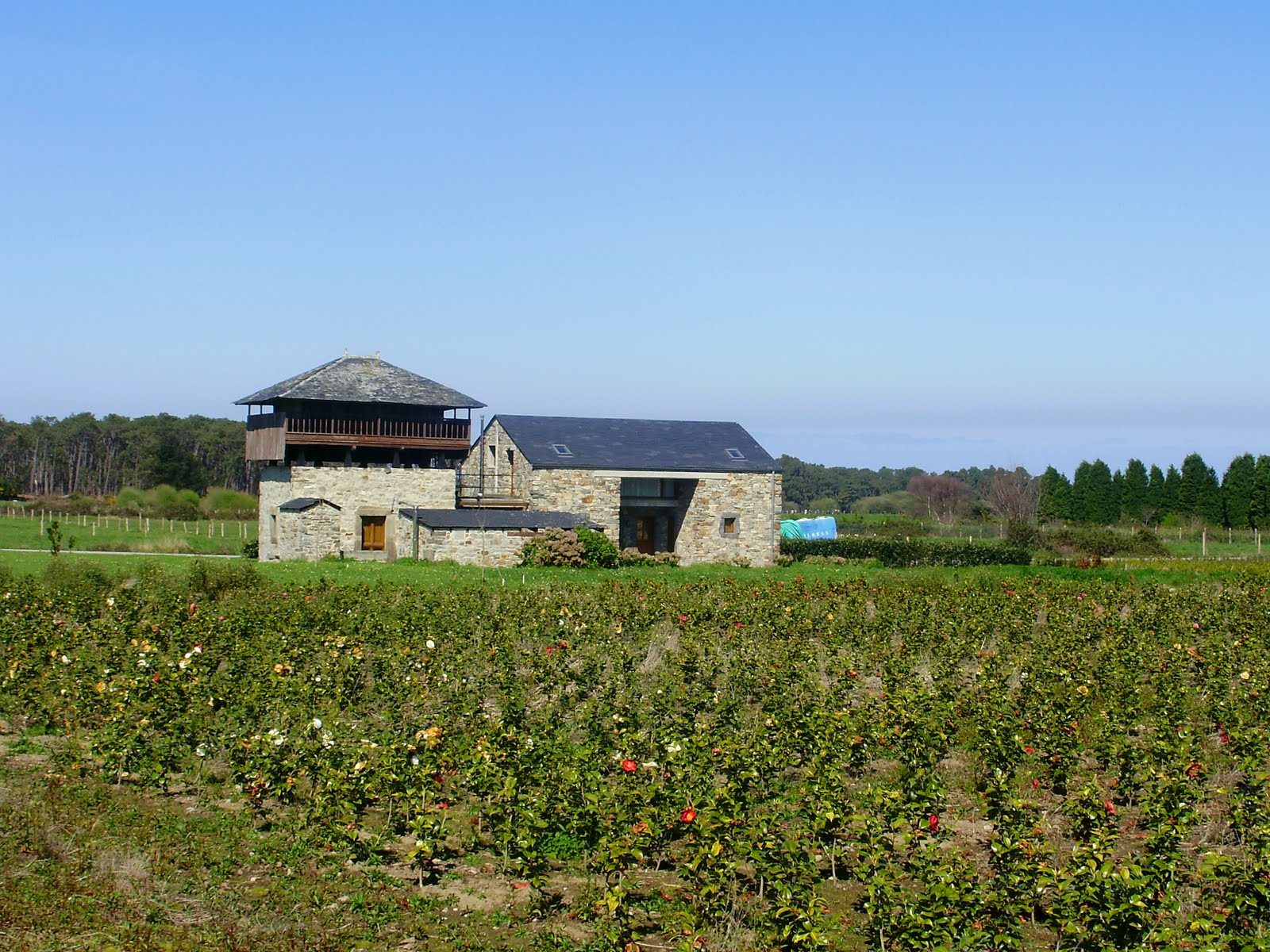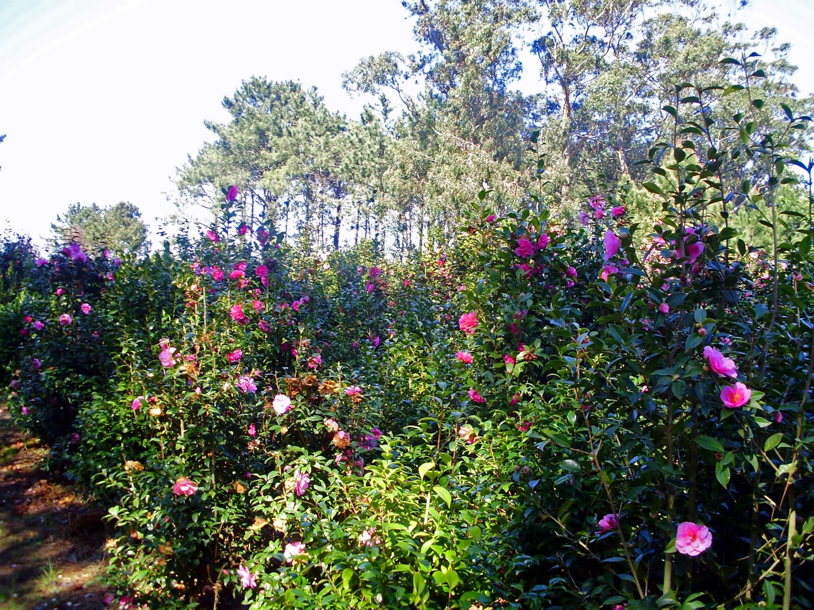 Tras cruzar el pinar nos topamos ya con un ancho camino que cruza una gran plantación de camelias.