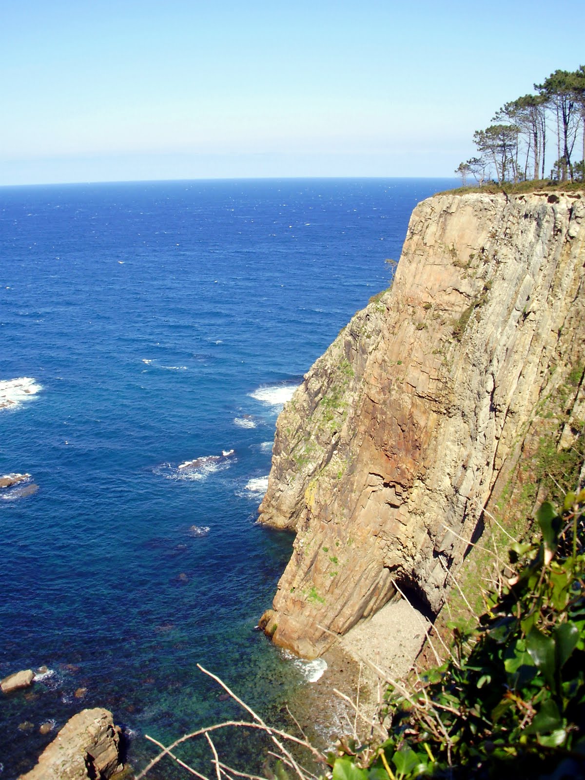 Dejamos la punta de Santa Ana y junto al borde del acantilado o atravesando las praderías (mejor si está la hierba segada) nos dirigeremos en dirección oeste-noroeste para acercarnos a la Punta la Osa próxima a la zona de pinares que vemos en la foto.