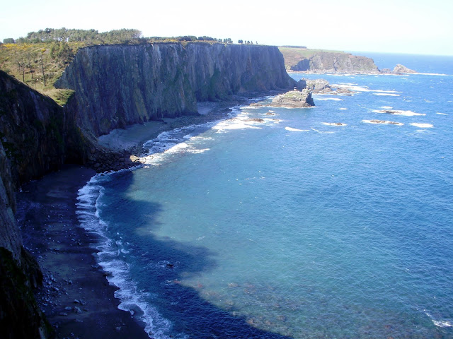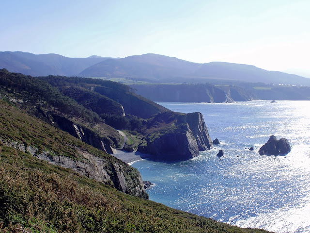 El sendero asciende hacia la zona de la Herbosa pasando por la zona de la punta del Águila, pudiendo contemplar un magnifico panorama de la costa occidental del Cabo Busto (que debido a la posición del sol no permitió sacar buenas fotos), más adelante llegamos a un último mirador desde donde tenemos buenas vistas sobre la playa de la Cueva lugar donde desemboca el río Esva