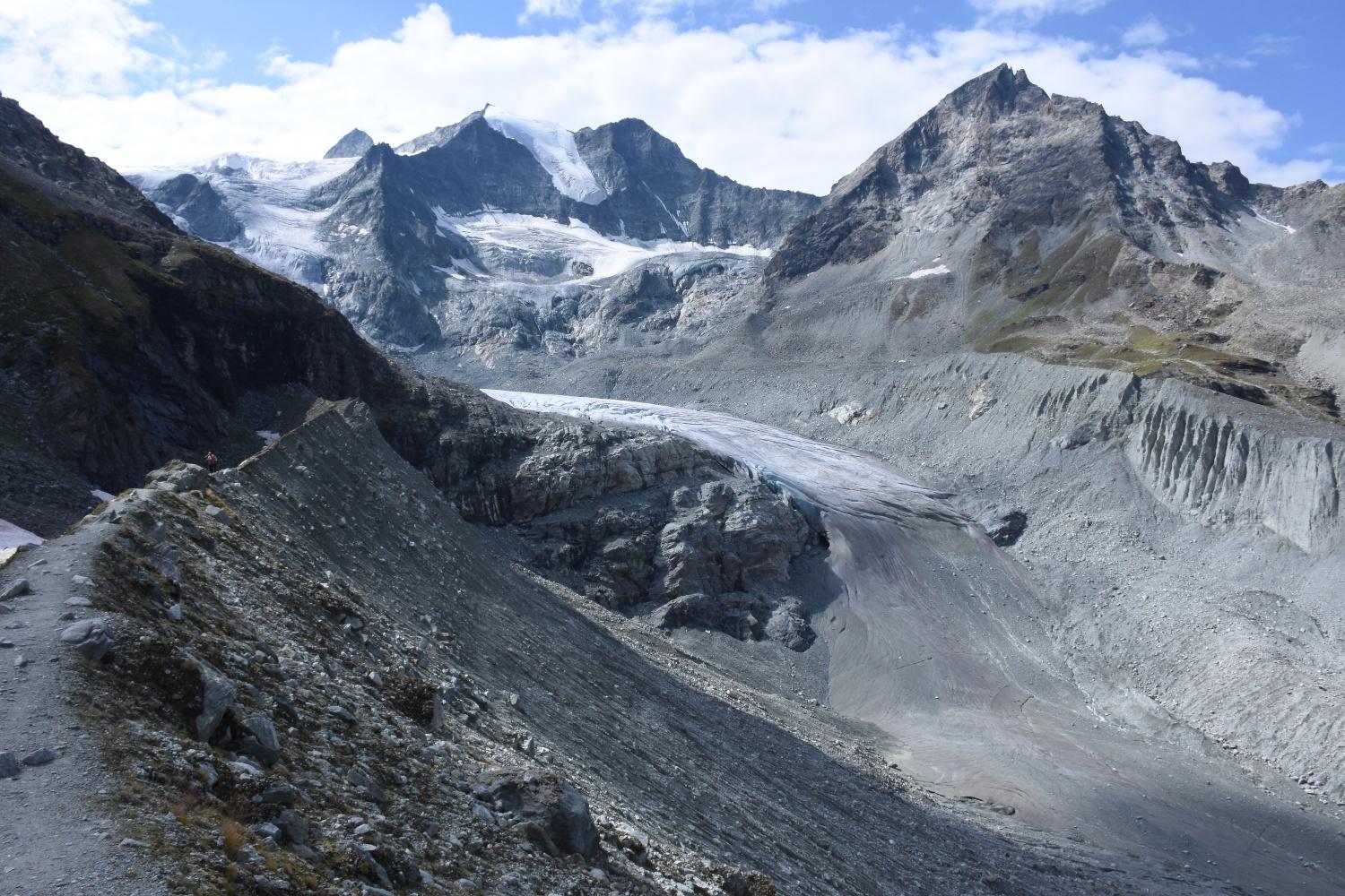 La subida desde la cima del lago "haut tour du Lac", como dicen los suizos, es variada y te llevará a las vistas más hermosas del glaciar Moiry, una maravilla de la naturaleza que se muestra al pie de la cabaña.